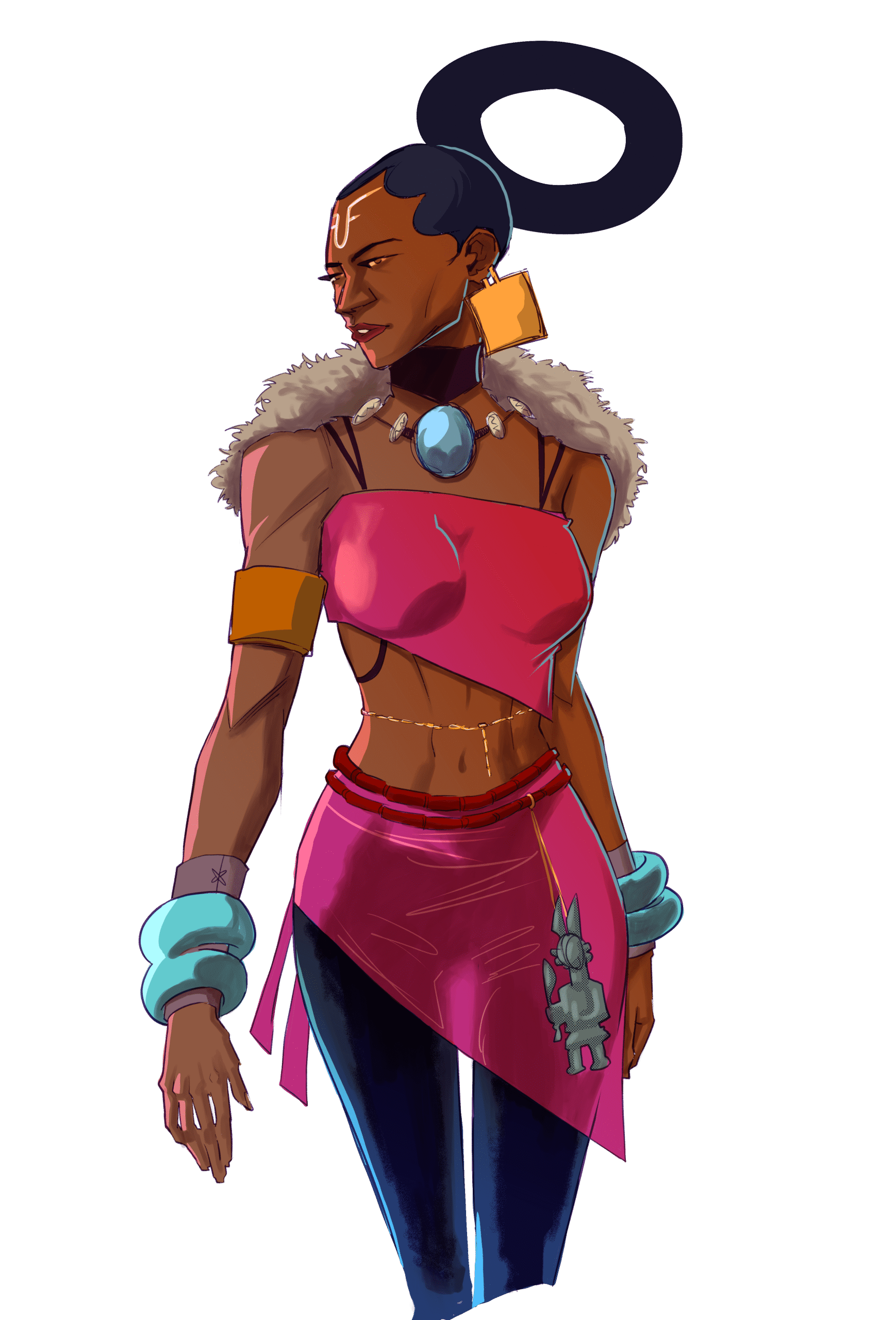 Next is Onwanuju, an occult detective with a full blue moon in her eyes. Her style and character strike a delicate balance between mystery and madness. Addicted to vaping, she is cynical, impatient, introverted, and recklessly fearlessdiving headfirst into battles against supernatural entities without hesitation.