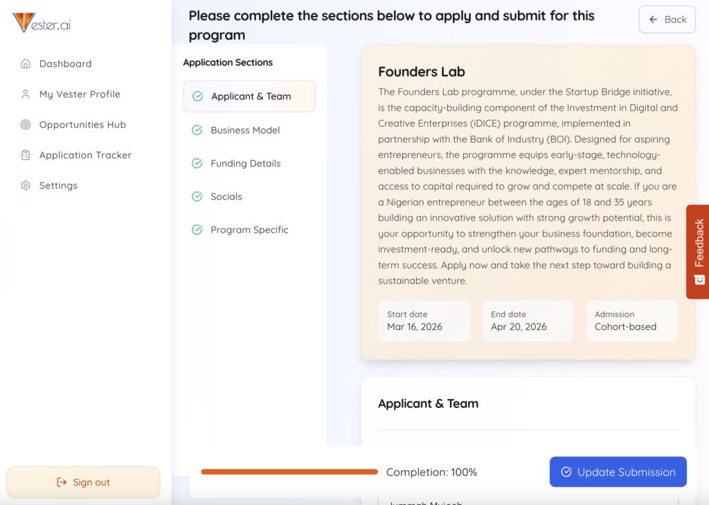 Our founder went all in, so this article can use his application to the iDICE Founders Lab as a case study for how African creatives can better position themselves for funding. The goal is not to present the application as exceptional, but to use it as a real-time example of how funding logic actually works when translated into structured responses.