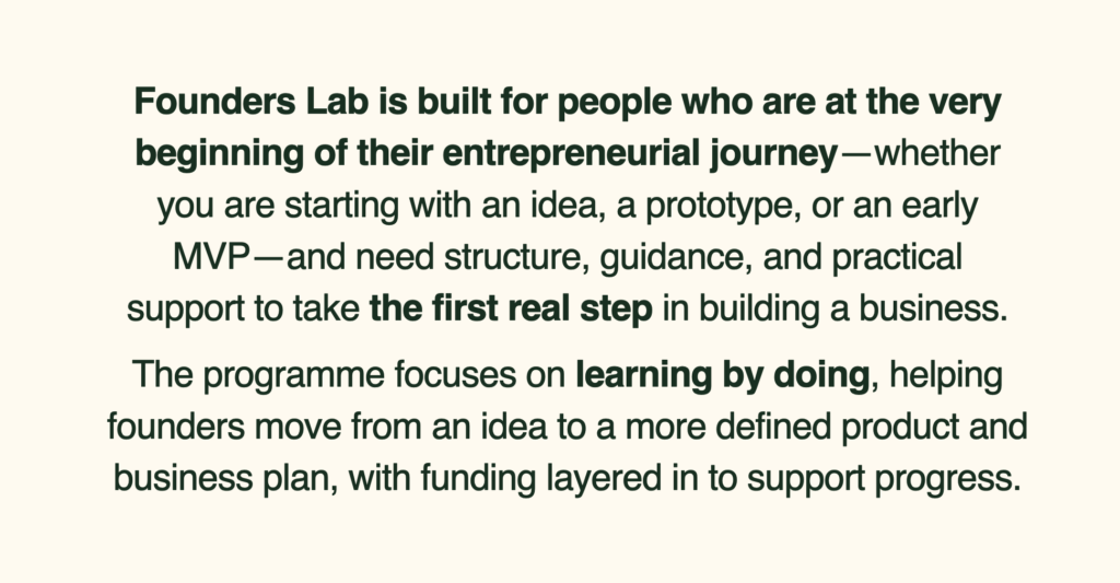 You can learn more about the programme and its objectives through the official platform and explore the Founders Lab specifically.